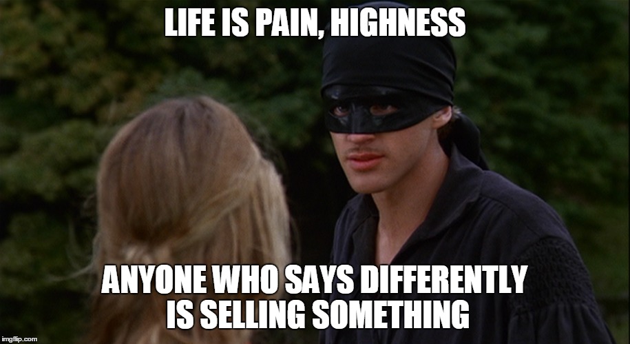 Today I’m hearing one such line in my head. “Life is pain highness. Anyone who says differently is selling something.”
