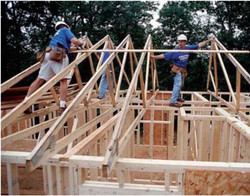 But it does give you an idea about what it’s like to put trusses up for the roof. Those triangular pieces form the skeleton for the top of the house. The way we put them in place was for my dad to hold the truss in one place, my brother to hold in a second, and me in a third, then all three of us would walk together along the top of a stud-framed wall to the position for that truss. We needed balance. When one of us wobbled, the other two could feel it. With sensitivity we could feel through the truss when one person was leaning and instinctively make balance adjustments for the error. My father was much heavier and better practiced at this activity, and he was like an anchor for the two of his children when they, in their inexperience, leaned too far one way or the other. The three of us made two houses one summer and, thankfully, nobody ever fell off the roof.